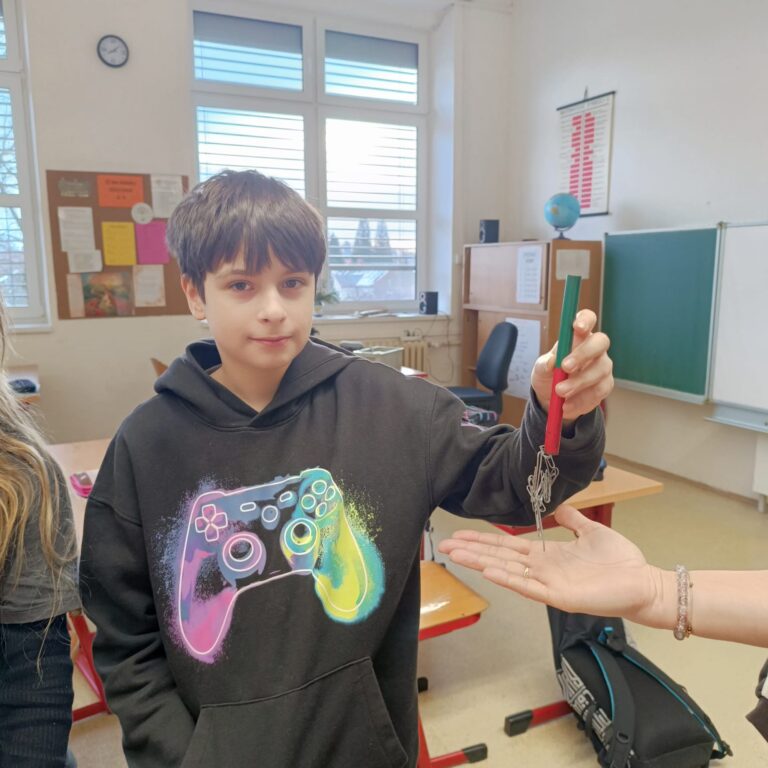 Dnešní fyzika v 6. A měla jasný cíl. Žáci měli rozdělit tělesa na ta, která jsou vyrobena z feromagnetických a nemagnetických látek. Nutná pomůcka: magnet.