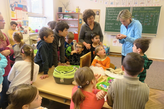 Co dodat? Vždyť zvířátka a děti jsou stále největšími kamarády. A jak se ke zvířátkům chovat, co vše potřebují, aby byla šťastná a spokojená, to prvňáci z 1. B již vědí. A také to, že zvířátko si nepořizujeme, pokud na něj nemáme čas a podmínky. Na naše mazlíky se přišly podívat i kamarádi z 1. A.