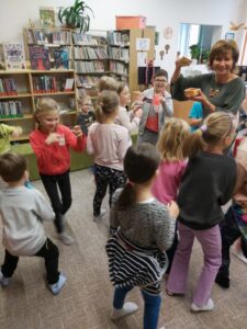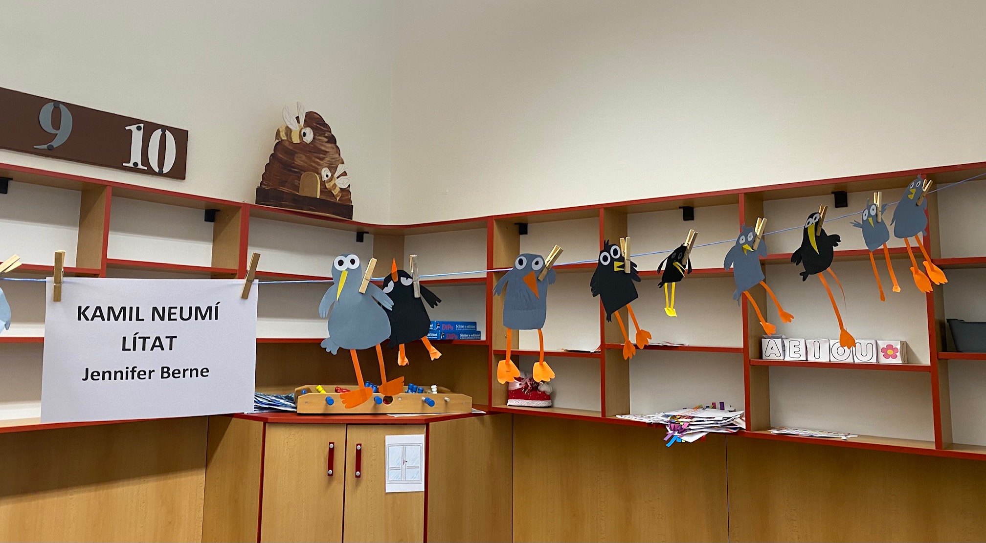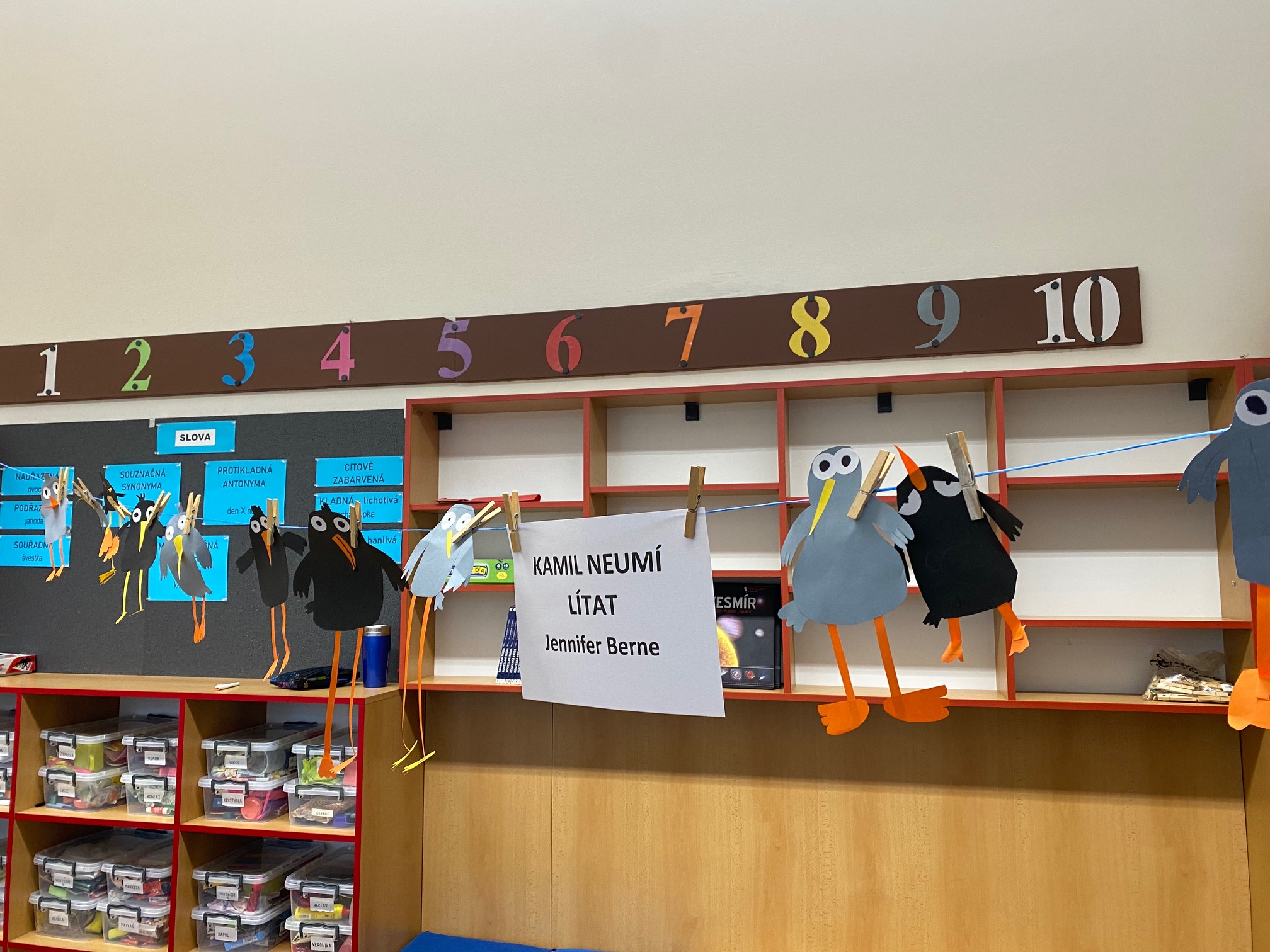 V minulém týdnu byla 2.A. v místní knihovně na představení knihy „Kamil neumí lítat“ od Jennifer Berne. Děti se poutavým způsobem seznámily se špačkem Kamilem a jeho zkušenostmi s létáním. Děkujeme paní Najmanové za krásně zpracovaný příběh. Nešlo jinak než, že jsme si spoustu špačků na drátě musely vyrobit i u nás ve třídě. Ještě jednou děkujeme za pěkné vyprávění.