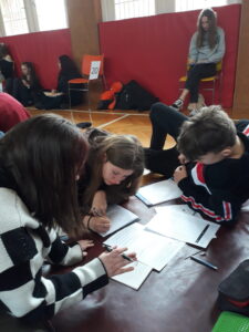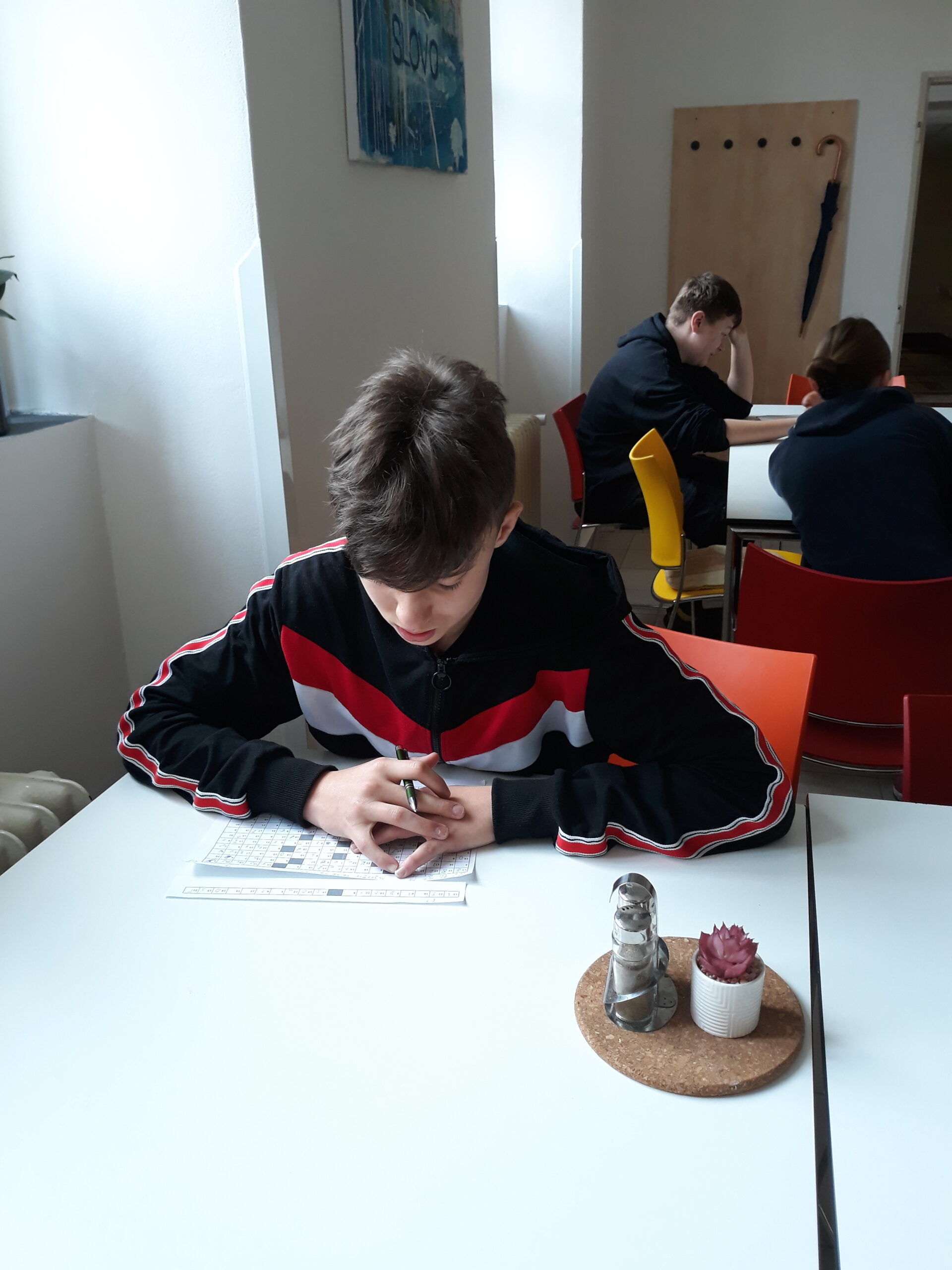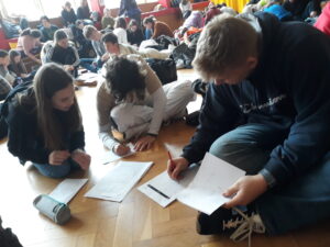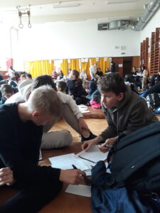 I tak by se dalo nazvat zápolení našich borců na Matboji. Tam se vydalo celkem 9 žáků z nejvyšších ročníků v pondělí 20. března, aby před přijímacími zkouškami procvičili, jak zdatní jsou v řešení slovních úloh. A nevedli si vůbec špatně. Ze tří trojčlenných týmů si nejlépe vedlo trio ve složení Nasťa D., Eliška K. a David J. z 9.A, kteří se zdárně popasovali s 15 z 23 slovních úloh. Davidovi však nepřálo štěstí při řešení bonusové tajenky, ke které chyběla pouhá tři písmenka! Týmu se tedy nepodařilo získat 5 bodů navíc a skončil těsně před branami finále A. Zbylým dvěma týmům k postupu do užšího finále chyběla nějaká ta úloha navíc, takže nakonec všichni skončili ve finále B a v celkovém pořadí obsadili příčky v druhé polovině výsledkové listiny. To však nikomu náladu nezkazilo, žáci si užili dopoledne s matematikou a celý den zakončili příjemným občerstvením v hradeckém McDonaldu.