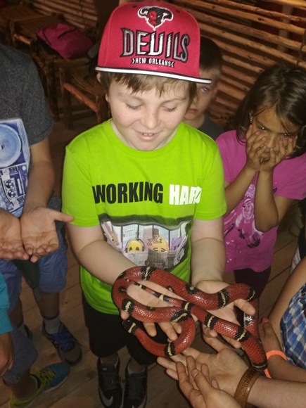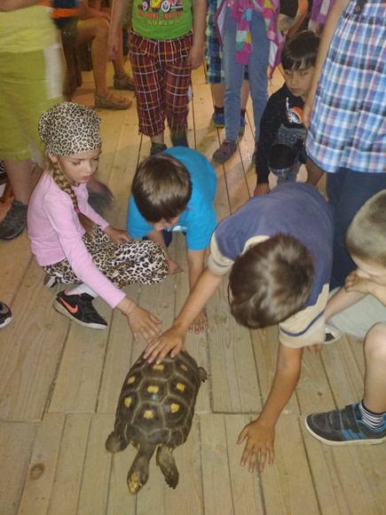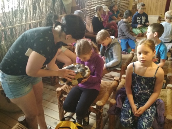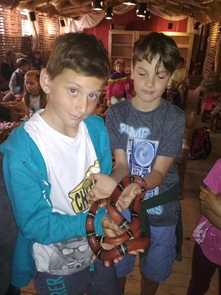 Po příjezdu si nás převzaly dvě sympatické průvodkyně, které nás spoustu naučily, ještě více ukázaly a hlavně uměly na všechny dotazy zodpovědět. Paní učitelky nám po interaktivním povídání rozdaly pracovní listy, podle kterých jsme ve skupinách v různých pavilonech vyhledávali informace o zvířatech. Po vyplnění jsme navštívili galerii, kde proběhla kontrola a jako odměnu jsme dostali pohled na památku. My osmáci jsme stihli i nastoupit do Safari-busu.