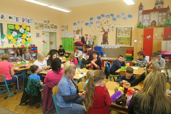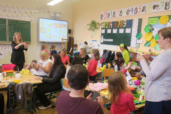 Odpoledne děti prožily společně se svými blízkými na velikonočních dílničkách při výrobě kuřátka a ozdobného věnce s narcisy.
