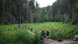 , vystoupali jsme tisíce schodů. Túru jsme si protáhli až do skal Teplických a zpět na ubytování ”V Pohodě” jsme se dopravili