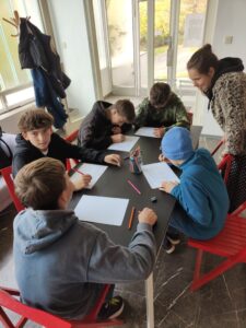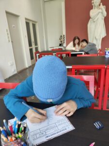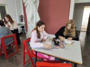 8. B se v hořické galerii zúčastnila výstavy Kosmos. Její součástí byly i tvůrčí dílny pro žáky. Aneb… vzděláváme se i při výtvarce. 🙂
