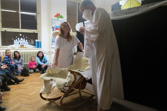 Součástí programu byla i poutavá pohádka v podání hořického souboru Zvonek, kterou napsala členka souboru V. Preusslerová a která zavedla děti až do zimního království sněhuláků. Pohádku plnou písniček a živých výstupů sledovali malí i velcí se zaujetím, které se projevilo i na pěkné spolupráci dětí s herci během představení.