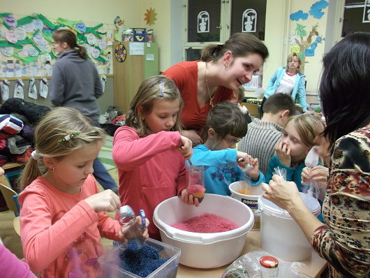 Pod rukama rodičů a dětí vznikali krásní andílkové, vánoční stromečky v květináčích, dárkové sklenice s pestrobarevnou a voňavou koupelovou solí.
