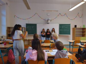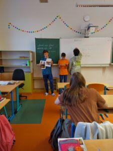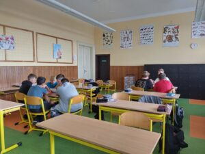 Tento týden žáci osmých tříd pronikli do tajemství barokní kultury a záludností učitelského povolání. Ve skupinách nejprve vyhledali informace např. o architektuře, hudbě nebo oblékání za časů baroka. Poté zformulovali zápis a naplánovali si prezentaci. Na závěr, jako odborníci, své téma představili spolužákům.