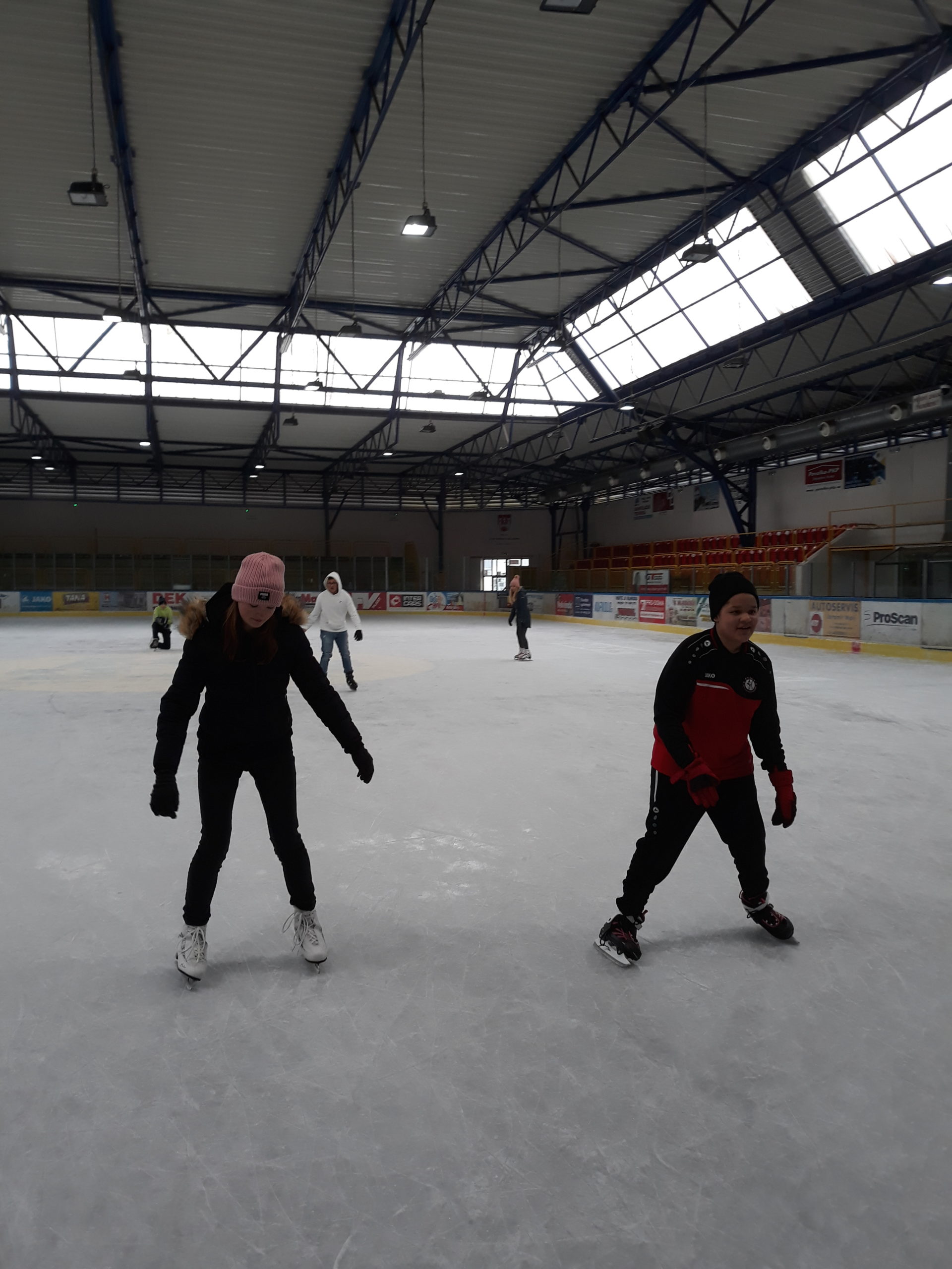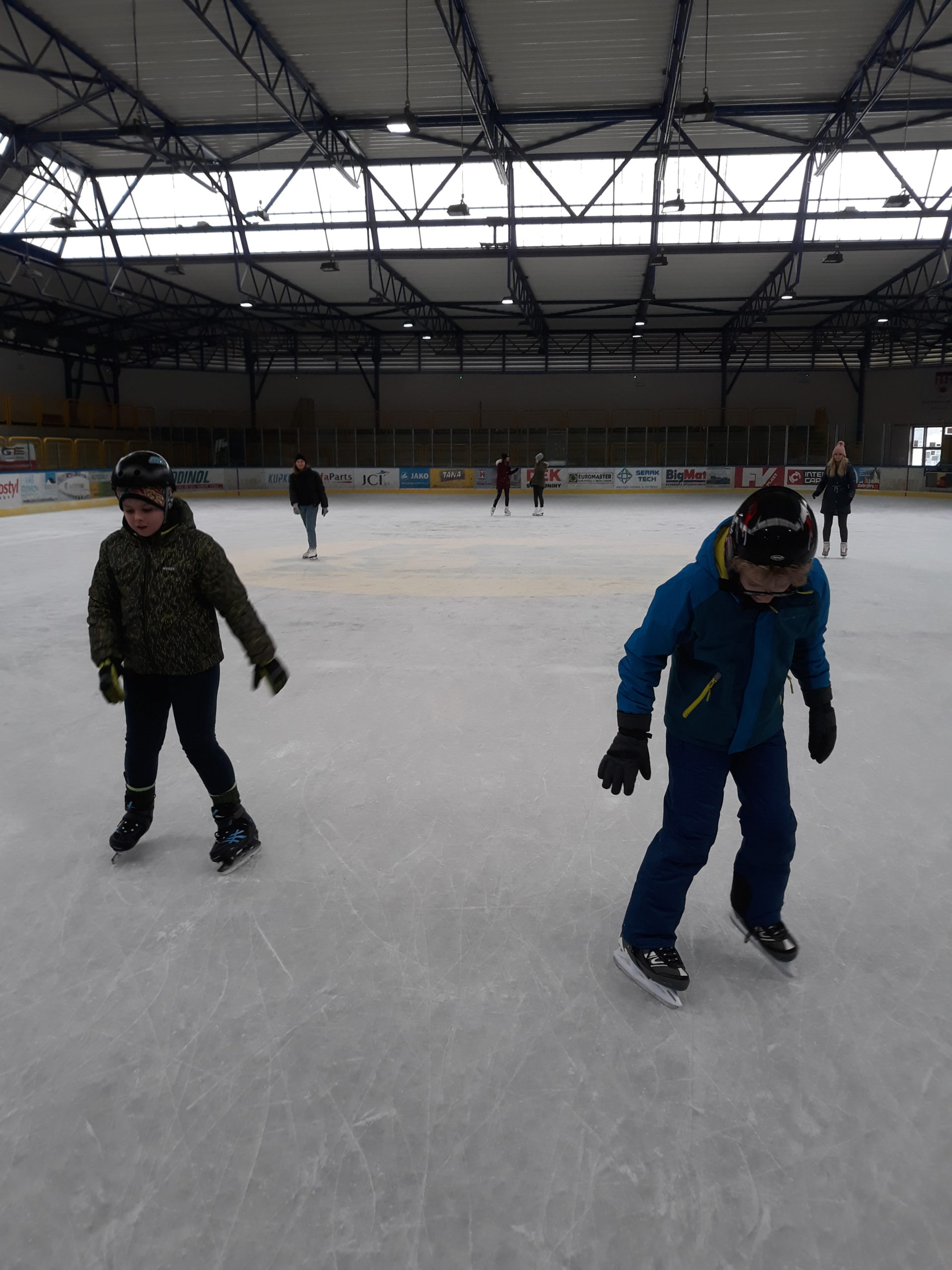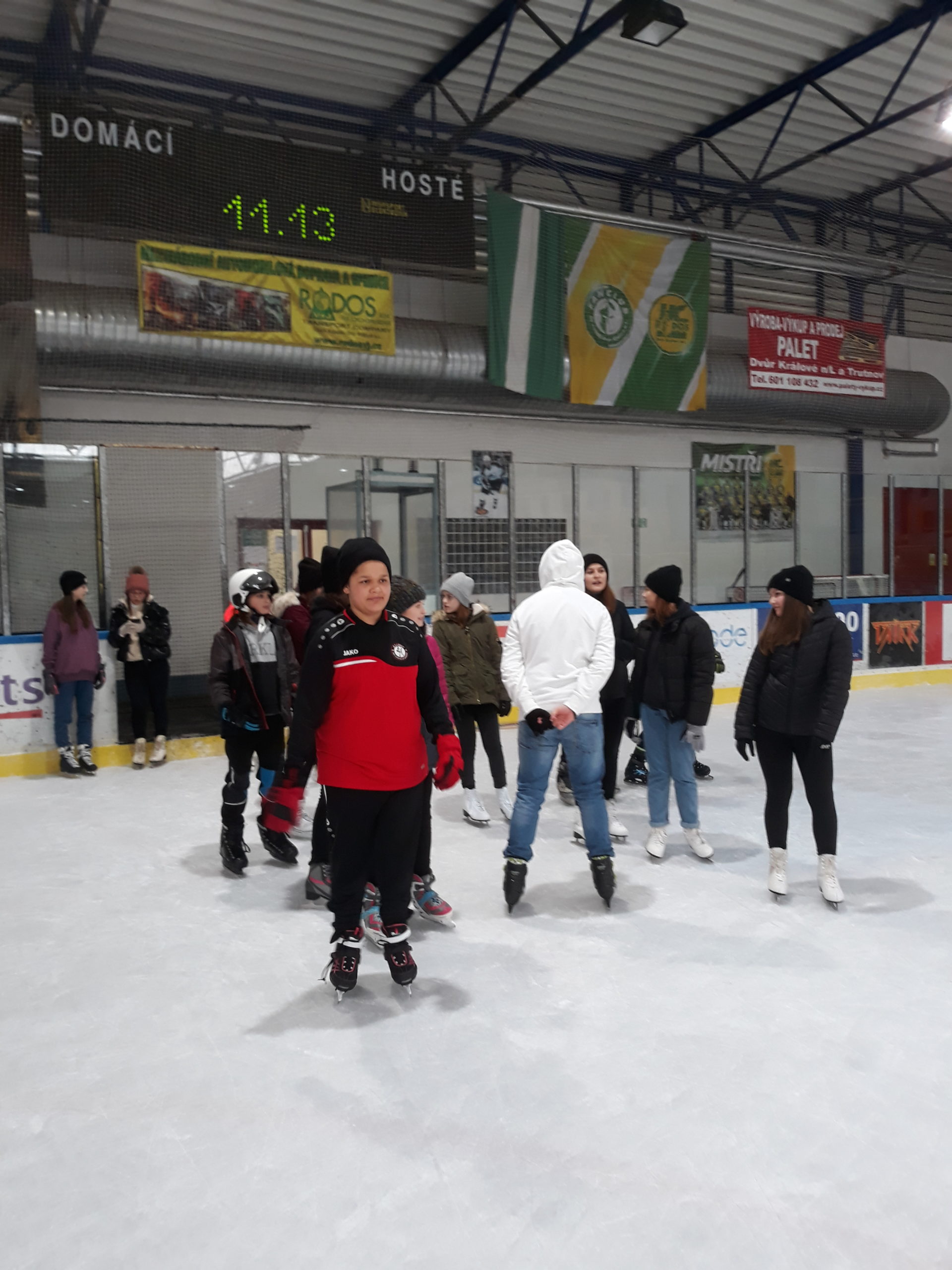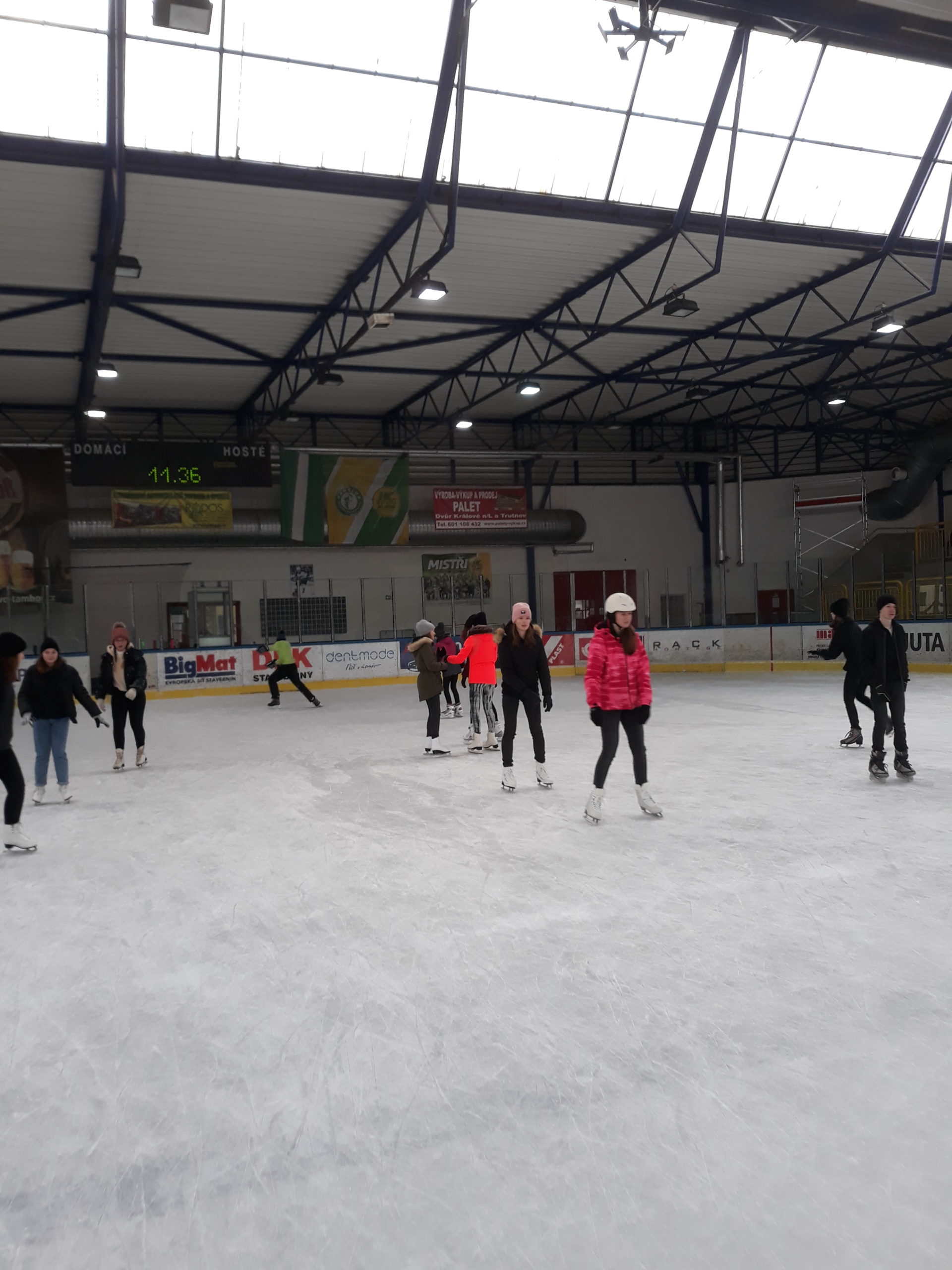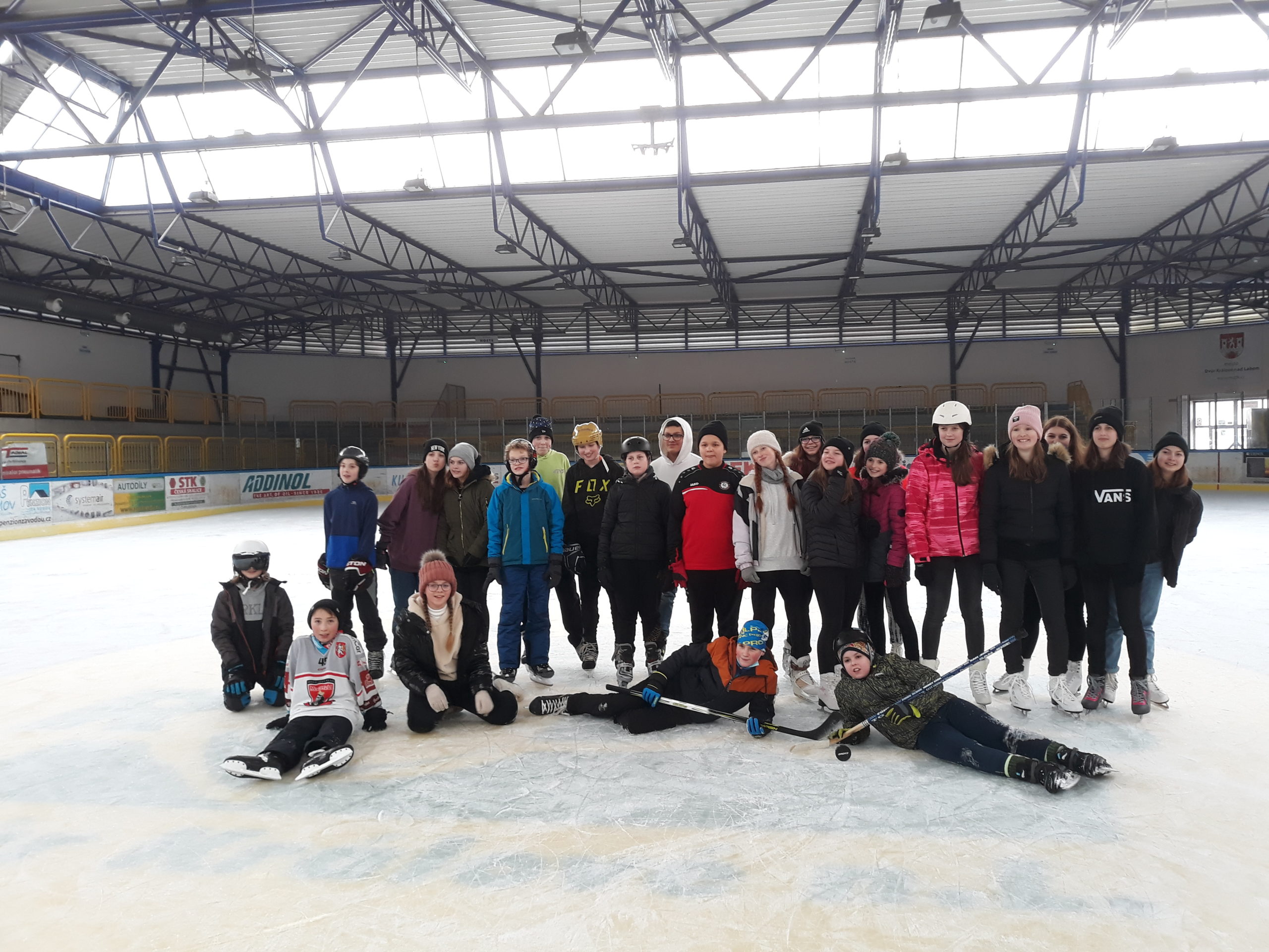 Lyžařský výcvik už mají sedmáci za sebou, a tak bylo na čase zdokonalit se v dalším ze zimních sportů. Proto jsme se v úterý 15. 2. vypravili na zimní stadion ve Dvoře Králové nad Labem. Sbalili jsme brusle, hokejky i nezbytnou svačinu a hurá na led. Po úvodním rozbruslení jsme začali pilovat techniku bruslení. Někteří žáci se po několika úvodních krůčcích osmělili, přidali na rychlosti a v závěru bruslení už jezdili po ledě skoro jako Martina Sáblíková. Jiní se zase soustředili na estetickou stránku věci a na ledě zkoušeli různé piruety a další krasobruslařské kreace. Chlapci dali většinou přednost hokeji a po ledě se proháněli jako Jardové Jágrové. Společně jsme si také zasoutěžili a hlavně… bruslení jsme si pořádně užili.