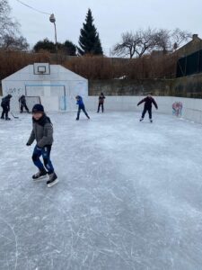 S napětím jsme sledovali předpověď počasí, která slibovala třeskuté mrazy. A ty opravdu přišly. Od pondělí bylo na kluzišti před naší školou živo. Od rána se střídala třída za třídou. Dopolední bruslení nemělo chybu, bohužel sluníčko nám tentokrát moc radost nedělalo, led se nám před očima měnil ve vodu a postupně se objevovala místa, kde se nedalo jezdit. Díky ochotným tatínkům byl ale led ráno opět připraven. Počasí letos dopřálo našim nadšeným bruslařům sice jen týden, ale třeba se v budoucnu dočkáme nějaké trvalejší ledové plochy.