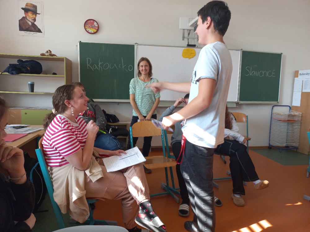 Tak se jmenoval workshop, kterého se dnes aktivně zúčastnili žáci obou našich devátých tříd. Do každé třídy vstoupili dva lektoři, kteří se snažili prostřednictvím vlastního zážitku dětí přiblížit zlomové okamžiky našich dějin.