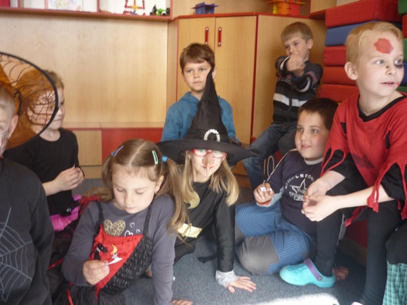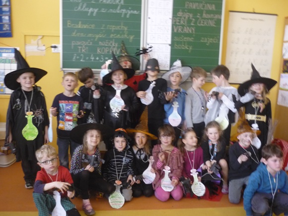 V pátek proběhlo v prvních třídách netradiční vyučování – čarodějné. Ráno jsme si společně umíchali kouzelný lektvar z nejrůznějších ingrediencí, jako jsou pavoučí nožičky, myší ocásky, chlupy z netopýra a spousta dalších. Po spočítání několika příkladů jsme si vybarvili obrázek čarodějnice, vyluštily kouzelné hady, vyrobili lahvičku na lektvar a také šerednou vlasatou čarodějnici. Projekt se podařil, už se těšíme na další …. třeba indiánský na škole v přírodě.