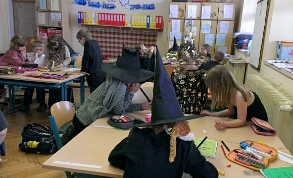V úterý 29. dubna se v druhé třídě konal slet čarodějů a čarodějnic. Sešli jsme se v plném počtu a čarodějný den si řádně užili. Nejdříve jsme se rozdělili do skupin a každý čaroděj dostal ve své skupině důležitou funkci, kterou musel celý den zastávat (např. kapitán, časoměřič, spojka). Následně jsme plnili různé úkoly, ale nejvyšším cílem bylo učit se spolupracovat v zadané skupině. Ten jsme plnili prostřednictvím vymýšlení kouzelných lektvarů a formulí, kde jsme uplatnili i naši kreativitu, dovednost psaní, kreslení a částečnou znalost pravopisných pravidel. Také jsme si započítali s čarodějnicí, protože bez dovednosti počítat by z nás nebyli řádní čarodějové. Na závěr dne nás čekalo milé překvapení v podobě poučné čarodějné pohádky připravené žáky osmé třídy pod vedením p. uč. Kateřiny Lhotové. Den nám krásně utekl a na středeční večer jsme řádně připravení. Letu zdar!