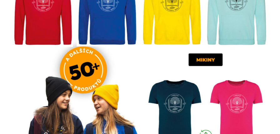 Máme pro Vás jedno skvělé překvapení! Do školy přichází nová školní kolekce oblečení a jste to právě Vy, kdo rozhodne o její podobě! Hlasujte od 19. 4. do 26. 4. 2023 o tom, který ze tří motivů se Vám líbí nejvíce. Hlasovat mohou žáci, rodiče i učitelé. Vítězný motiv potom bude použit na vytvoření celé kolekce, kde najdete nejen mikiny a trička …