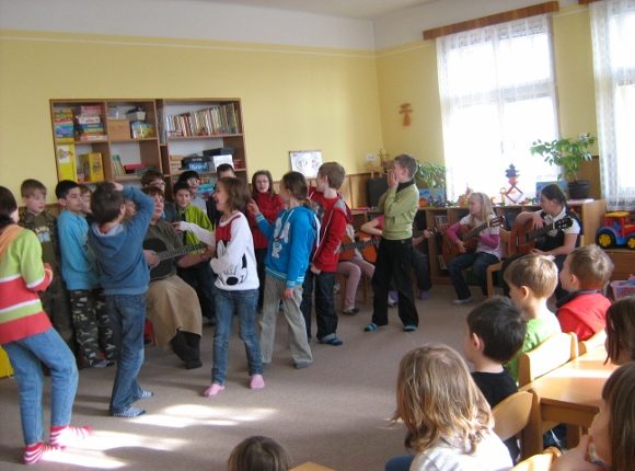 Protože žáci 3.B si na setkání s rodiči velmi hezky nachystali písničku “Daleko na severu” od J. Nohavici, rozhodli jsme se, že ji předvedeme i ve školce. Přidala se k nám i 4 děvčata ze 4.B s kytarami a třemi lidovými písničkami. Celá akce se vydařila. HA