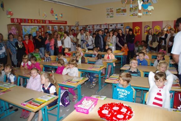 V pondělí 3. září se dveře naší školy poprvé otevřely pro 27 dětí, z kterých se rázem stali prvňáčkové. Přivítat a pasovat na Haberáčky je přišel samotný pan král Jaroslav III. zvaný Moudrý.