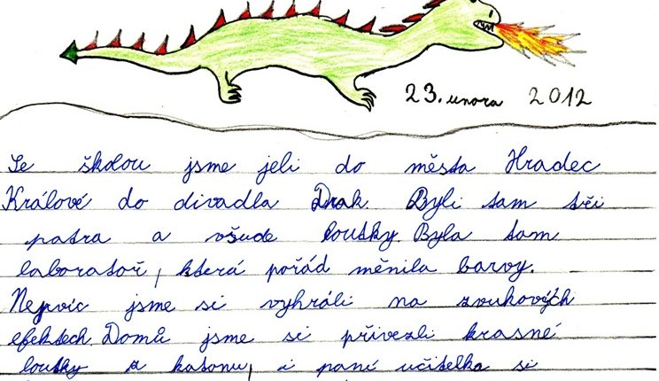 Ve čtvrtek navštívili třeťáci z naší školy tvůrčí dílnu v divadle Drak. Potom si zpracovávali svoje zážitky jako stránku do časopisu a přitom si utvrzovali učivo ze slohu – každé vyprávění musí mít úvod, stať a závěr.