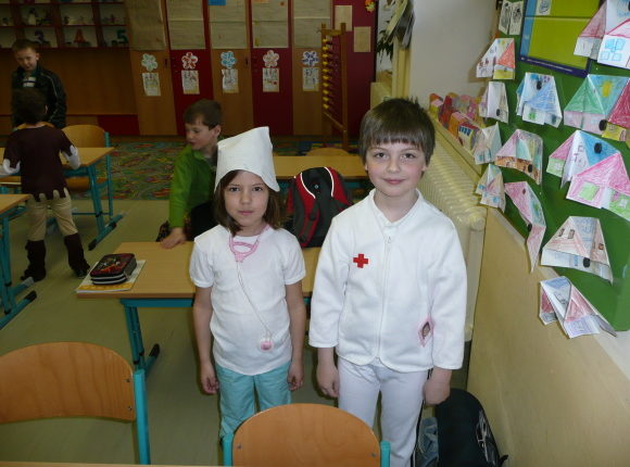 1. dubna jsme se do školy vypravili jako do zaměstnání. Rozhodli jsme se, že tento aprílový den nepůjdeme do školy jako obyčejní školáci, ale za někoho se převlékneme. Ve třídě jsme měli např. úředníka, lékaře, policisty, rozhodčího, vojáka, agenta, chůvu……