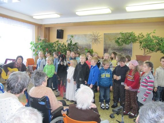 Celý prosinec na naší škole začínaly dny poněkud netradičně. To když se po prvním ranním zvonění chodbou rozezněly vánoční koledy, které tu každé ráno zpívali (nejen) druháčci za kytarového doprovodu paní učitelky Honegrové. Jejich nadšení bylo úžasné a skutečně byla radost je poslouchat.