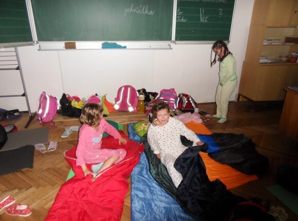 Na pondělní spaní ve škole jsme se v šestce všichni těšili. Odpoledne na nás ve třídě čekaly některé maminky, které si pro nás připravily vyrábění vánočních skřítků. Těch jsme stvořili celou rozvětvenou rodinu, však se na ně přijďte podívat na vánoční trhy 6.12. Po odchodu maminek nastalo velké chystání strašidelné stezky. Nikdo nesměl vstoupit do nižších pater školy kromě našich bubáků. …