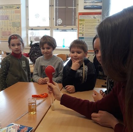 Budeme se učit zkoumat jako vědci. Naši kamarádi z 9. tříd nám ukázali ve své “laboratoři” několik pokusů. Viděli jsme filtraci, difuzi, chromatografii, neutralizaci, změny barev i hoření látek. Teď už víme, že pod takto složitými názvy se skrývají zajímavé a docela jednoduché pokusy. Těšíme se, že si sami také něco vyzkoušíme.