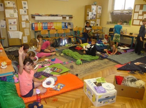 Tak jsme se konečně dočkaly! Ve čtvrtek odpoledne začalo velké stěhování do třídy. Po připravení pelíšků jsme ochutnali první část večeře a pak jsme šli do lesa hledat “poklady”. Ty jsme pak použili na výrobu lapačů snů, aby se nám dobře spalo. Během vytváření jsme si dojedli i skvělé večeře od maminek. No a pak už omýt, pohádka a spát. …