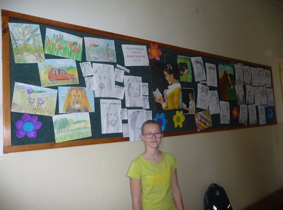 Na naší školu chodí do 5. tř. jedna velmi šikovná, výtvarně nadaná slečna – Eliška Novotná. Chodí do výtvarného kroužku a kreslí také ve svém volném čase. V současné době probíhá ve 2. patře školy výstava její úžasné tvorby. Žáci a učitelé naší školy se tak mohou podívat a inspirovat. Jen tak dál, Eiško, jde ti to moc dobře! M. …