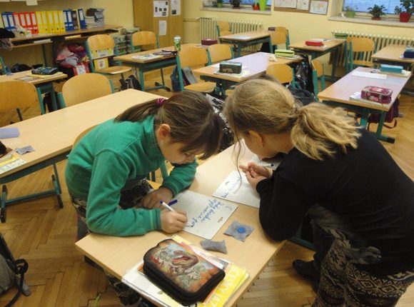 Dnes měly děti trochu jinou hodinu českého jazyku. Nejdříve si přečetly dopis na tabuli. Podle pokynů v něm se rozdělily do skupin. Pak začaly plnit úkoly, kterými si zároveň zopakovaly a procvičily učivo o vyjmenovaných slovech a o podstatných jménech. Vyhledávaly například vyjmenovaná slova a slova příbuzná v textu, učily se básničku, vymýšlely hádanky a další. Po splnění všech osmi …