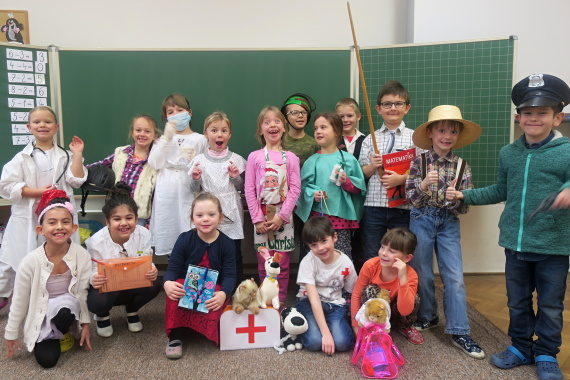Před jarními prázdninami se uskutečnil další tematický den. Tentokráte přišly děti do školy oblečeny tak, aby bylo poznat, jaké povolání by se jim v jejich životě líbilo, jakou práci by si v dospělosti vybraly za své povolání. A tak se v naší tělocvičně sešlo nakonec mnoho zajímavých profesí a děti si pak zazpívaly společně několik písniček. Ve třídě jsme se potom pobavili i scénkami, …