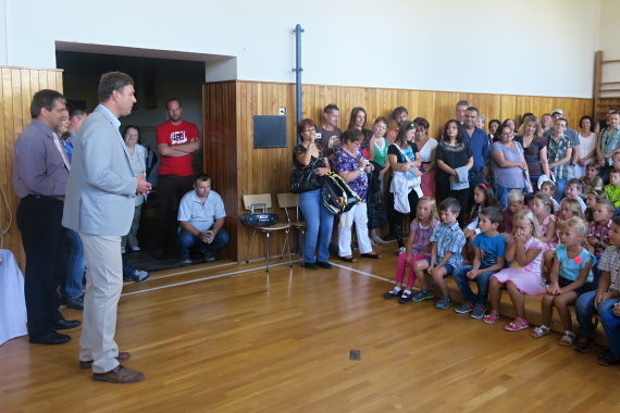 1. září bylo dlouho očekávané datum pro naše nejmenší školáky, děti, které se chystaly do svých prvních tříd. Tento den je místo školních lavic čekalo pasování na členy haberské družiny krále Jaroslava. Přítomným dětem a jejich rodičům, sourozencům, babičkám a dědečkům, se představily nejprve jejich budoucí třídní paní učitelky a několik milých slov jim řekl i pan ředitel školy R. Chalupa …