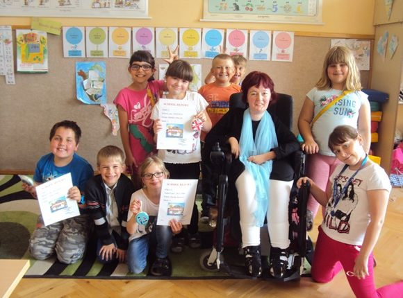Když se děti rozdovádí, stačí zatroubit na klakson vozíku. Když je potřeba rozdat materiály, smazat tabuli, zvládnou to prvňáčci i druháčci sami. Takhle totiž probíhají hodiny kroužku angličtiny na ZŠ Na Habru v první a ve druhé třídě. Je to taková integrace naruby. Na vozíku není žák, ale paní učitelka. Již třetím rokem vedu kroužky anglického jazyka na této škole. …