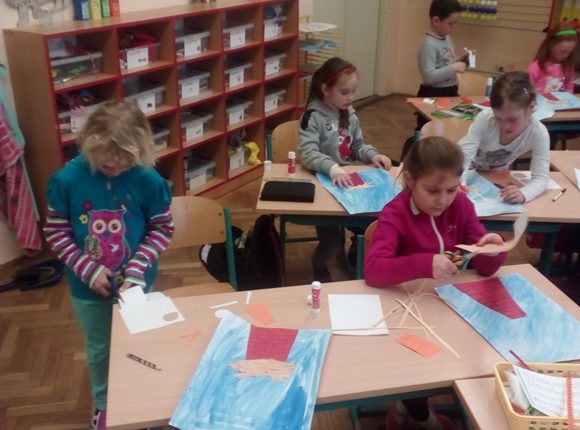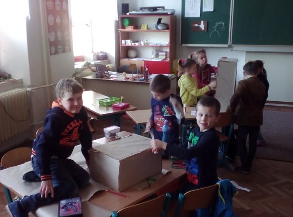 Ve čtvrtek 21. dubna pracovaly děti skupinově ve svých kmenových třídách na nejrůznějších úkolech. Prvňáčci se dozvěděli spousty informací o třídění odpadu a vyrobili si „žrouty“ odpadu na alobal, plast, papír, plastová víčka a bioodpad. Druháčci nejdříve vyhledali nejohroženější druhy zvířat na naší planetě a následně vytvořili mapy jejich výskytu. Mapy doplnili legendou s informacemi. Třeťáci tvořili piktogramy na téma …