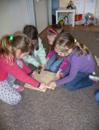 Prvňáčci se dnes dvě hodiny opravdu činili. Pustili jsme se totiž do plnění druhého soutěžního úkolu v celorepublikové soutěži Lovci nebes, a to do výroby ptačích krmítek. Velmi mě potěšilo, že všechny děti s nadšením a hlavně se zručností, pracovaly na smontování či stlučení jednotlivých částí krmítka. Výsledek se velmi podařil, hlasováním jsme vybrali nejhezčí krmítko, které zašleme do Krušných …
