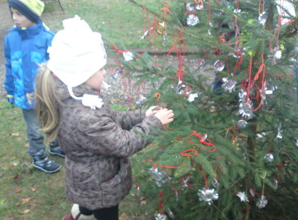 Děti z prvního stupně vyráběly ve škole ozdoby na vánoční stromeček. Ozdoby byly netradiční, vyrobené z hliníkových kalíšků po čajových svíčkách, které děti rozstříhaly na nádherné hvězdy. Žáci z 1.B a 2.A převzali ve škole ozdoby z celého prvního stupně a na náměstí u kašny s nimi krásně ozdobili připravený stromek. Jak se jim to povedlo, se můžete podívat až doposud.