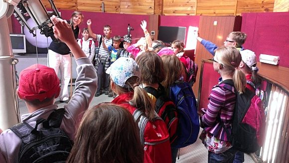 V pondělí 8. června jsme vyrazili s třeťáčky na exkurzi do hvězdárny v Hradci Králové. Větší část programu jsme strávili v digitálním planetáriu, kde jsme pozorovali noční a denní oblohu, proletěli jsme sluneční soustavou, podívali se na Měsíc a některé planety. Vše jsme završili pozorováním Slunce dalekohledem. Již nyní se těšíme na další návštěvu. 😉