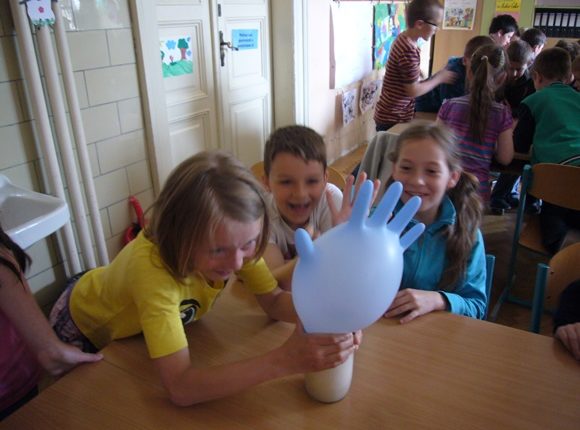 Během hodiny přírodovědy se čtvrťáci naučili jednoduché školní pokusy, se kterými se chtěli pochlubit i ostatním. Pozvali si na návštěvu kamarády druháčky. Všechny pokusy byly na téma Zázraky neživé přírody. Druháčci si pod vedením starších spolužáků vyzkoušeli Kouzelnou rukavici (reakce octa a sody), Tančící rozinky (rozinky v perlivé vodě). Vrcholným číslem byla hořící ruka paní učitelky… Na princip pokusů šikovné …