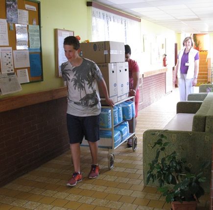 Dne 27. 4. 2015 naše třída IX.B navštívila místní domov seniorů. Sraz byl v 8 hodin před domem, kde se nás okamžitě ujaly milé sestřičky. Rozdělili jsme se na tři skupinky. Tadeáš a Matouš šli do skladu v přízemí přerovnávat krabice s toaletními potřebami. Stejný úkol dostali i Tomáš a Dan o patro výš. Klára, Maky, Týna, Káťa a já jsme …