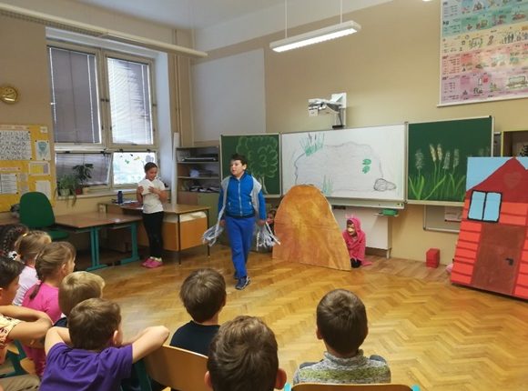 Poslední slunečné paprsky využily třídy 5.B a 1.A k návštěvě Zoo ve Dvoře Králové nad Labem. Ale pozor, nejednalo se jen o obyčejnou exkurzi! Poté, co se prvňáčci v doprovodu paních učitelek prošli zoologickou zahradou, se žáci páté třídy zhostili role průvodců a v malých skupinkách seznámili dvojici či trojici našich nejmenších s vybraným zvířátkem v přidělené expozici.
