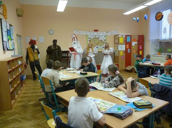 Dne 4.12. naší školu navštívil Mikuláš s dvěma Anděly a Čerty. Zavítal k dětem na 1. stupeň. Děkujeme žákům 9. třídy Jakubovi Noskovi, Péťě Baliharové, Karolíně Matuškové, Romanu Molnárovi a Martinu Marxovi za výbornou přípravu kostýmů a pěkný přístup k malým dětem.