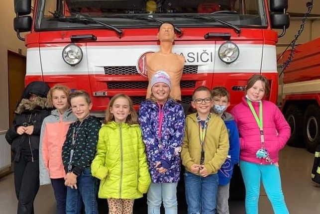 Tento týden navštívily děti ze školní družiny hasičskou stanici. Během poutavé besedy s hasiči a záchranáři se dozvěděly, co tohle povolání obnáší. Se zvědavostí sledovaly ukázky první pomoci. Samy pak měly možnost si řadu věcí vyzkoušet a prohlédnout.
