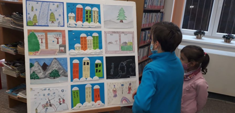 Děti ze školní družiny se zúčastnily soutěže Zasněžené Vánoce .Vytvořily knihy plné zimních obrázků inspirovaných pohádkou – Jak Vánoce málem byly na blátě – z knížky Zbyňka Malinského Vánoční pohádky. Děti za své obrázky získaly knižní odměnu a všechna výtvarná díla jsou vystavena v prostorách knihovny až do 12. února 2022.