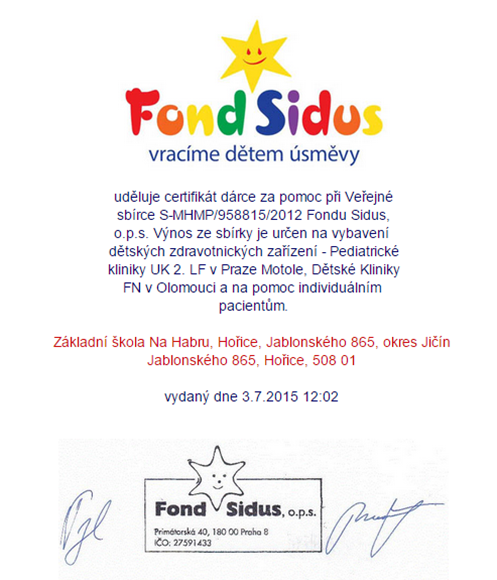 Certifikát Fondu Sidus, o. p. s.