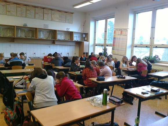 Netradiční hodina matematiky byla zaměřena na představu, fantazii, odhad, zkušenosti, spolupráci (skupinu tvořili 2 sedmáci a 2 deváťáci) a hlavně počítání. Ovšem konečně nějaká hodina, kde nebylo zakázáno používat chytré telefony.