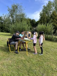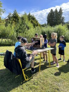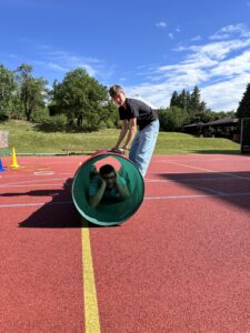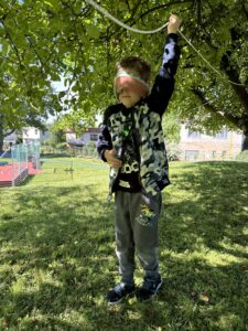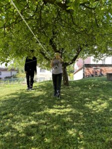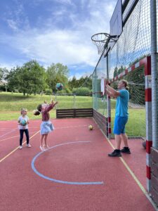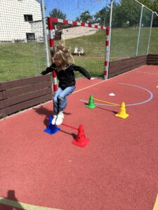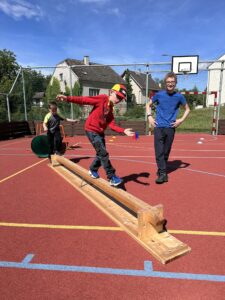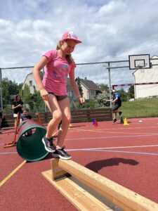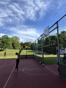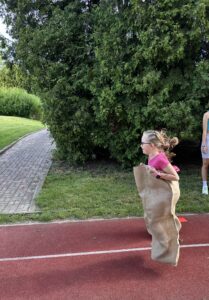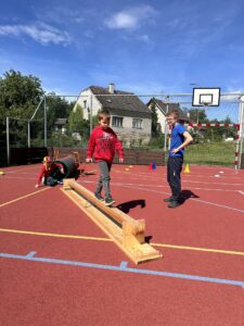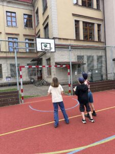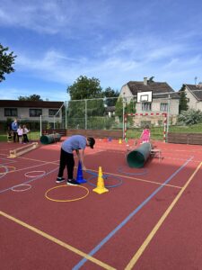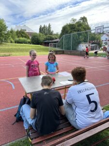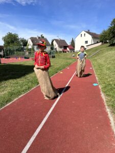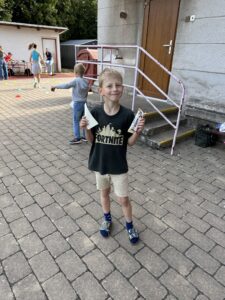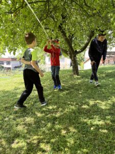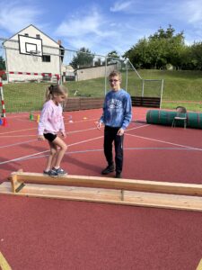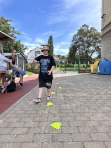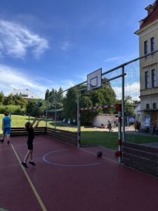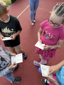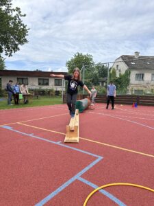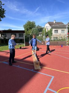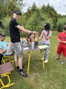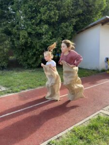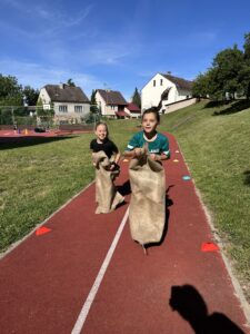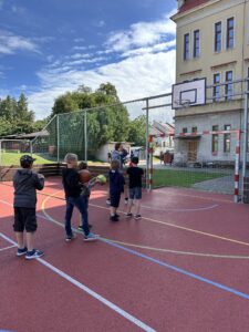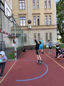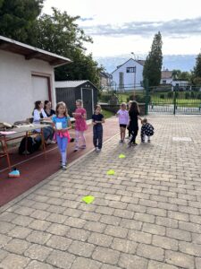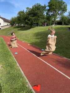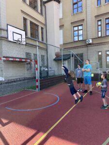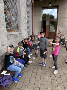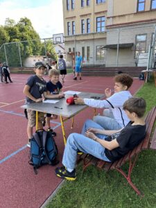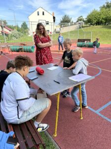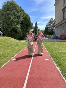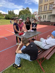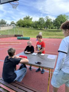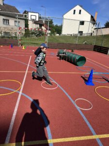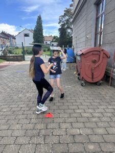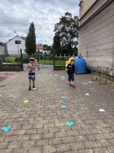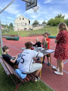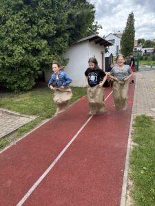 Dnes si žáci 9. B připravili pro děti z prvního stupně dětský den. Na zahradě přichystali několik stanovišť s různými úkoly (hádání pohádkových písniček, poznávání věcí poslepu, skákání v pytli aj.). Děti za splněné úkoly získávaly písmena, ze kterých nakonec složily tajné heslo. Za to je čekala sladká odměna. Všichni se dobře bavili a společně si tak užili dnešní hezký den. ☀️