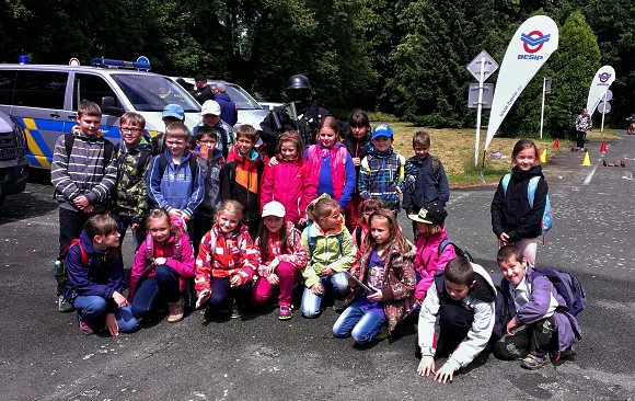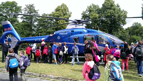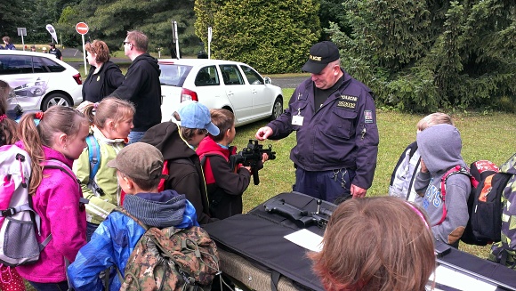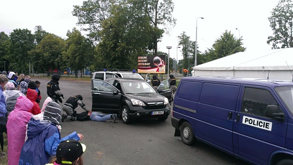 V Hradci Králové nebylo počasí tak tragické jako v Hořicích. Déšť nás zastihl snad jen čtyřikrát a to v podobě kraťounké přeháňky. Zato odměnou za naše odhodlání nám byla perfektní akce. Byli jsme svědky příletu policejní helikoptéry, kterou jsme si mohli prohlédnout zblízka. Prohlédli jsme si také policejní motocykly, auta, zbraně, oblečení… Bylo toho moc. 😉 Dále jsme mohli zhlédnout demonstrace zásahů pořádkové a zásahové jednotky, což se nám velmi líbilo.