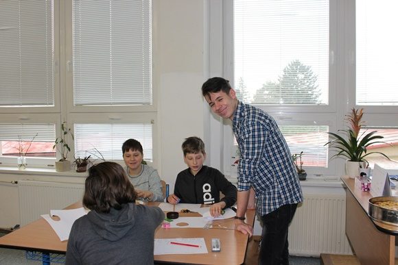 Ve čtvrtek 14. 2. vyrazili páťáci na Hořické gymnázium, kde pro ně byl připraven matematický projekt. Během úvodního zkoumání a měření si vyvodili a seznámili se s důležitou matematickou konstantou, která udává poměr obvodu jakéhokoliv kruhu k jeho průměru. Její hodnota v desítkové soustavě je 3,14159265359… Sled těchto číslic fascinuje matematiky již dlouhá léta a během posledních pár století se snaží vypočítat více číslic ? a prozkoumat jeho vlastnosti.