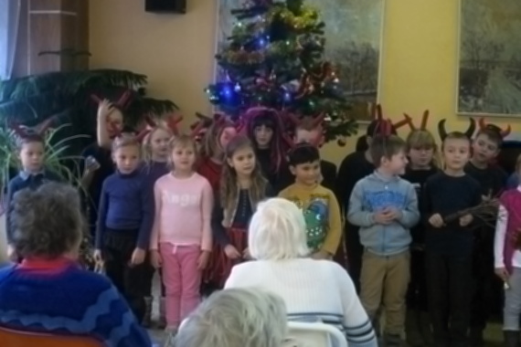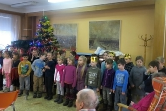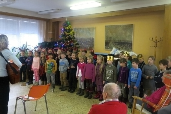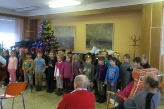 V pátek 16. 12. se prvňáčci z obou tříd se svými třídními učitelkami vypravili potěšit s vánočním hudebním programem babičky a dědečky v Domově důchodců. Děti zazpívaly zimní písničky a koledy, přednesly básničky. Doprovázely se na jednoduché nástroje, s hudebním doprovodem na kytaru pomohla p. uč. Z 1. A, Z. Slezáková. Děti se velmi snažily, aby je všichni posluchači dobře slyšeli, a za svou snahu a vystoupení dostaly od vedení domova sladkou odměnu.