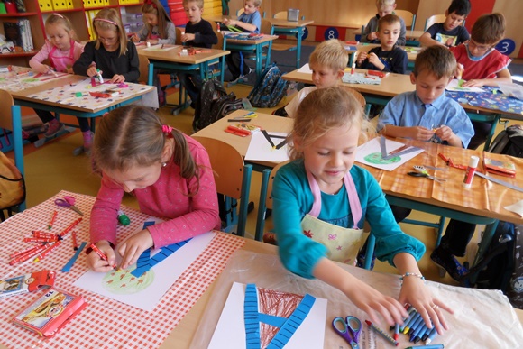 Děti z 1.B a jejich činnost k výuce písmene A