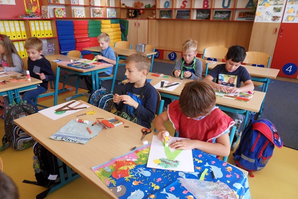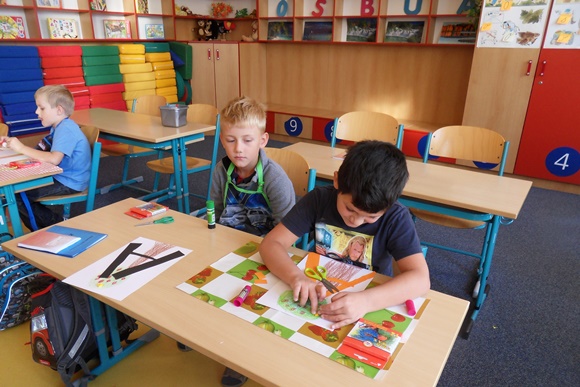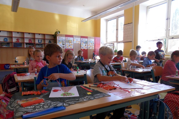 Začíná čtvrtý týden školy a žáčci z 1.B už umí pět písmen – O S B U A.