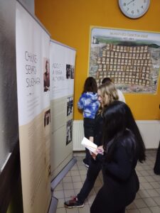 V prosinci se žáci devátých tříd zabývali problematikou holocaustu. Vysvětlili jsme si základní pojmy, ale také jsme navštívili výstavu Spravedliví mezi národy. Zde se žáci seznámili s příběhy lidí, kteří v době druhé světové války zachránili život pronásledovaných Židů.