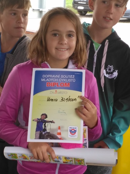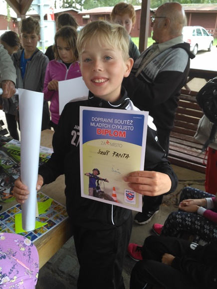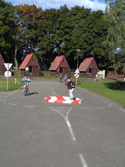 Ve středu se naši páťáci opět vrátili na dopravní hřiště. Tenokrát přišli, aby si zkusili „ostré“ testy. Pan Čeřovský a jeho kolega si pro žáky připravili testy, jízdu zručnosti na jízdním kole a jízdu dle dopravních značek. Opravdu to byly závody, žáci dostali sartovní čísla a po malé rozpravě (opakování značek a pravidel silničního provozu) se vše odstartovalo. Každý žák si vyzkoušel každou disciplínu, za kterou sbíral body. Jak to vše dopadlo? Všichni zvládli každou disciplínu bez odřenin, zlomenin a dopravních nehod. Kdo vyhrál? To prozradí fotografie…